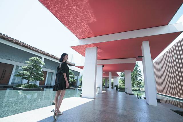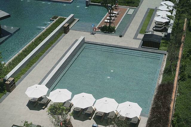 图书馆外面是一个完全对称的水池,与远处景色层次分明。这是两位世界顶级设计师Bill Bensley和Jean-MichelGathy,联手打造的不拘一格的景观园林,造景一流!