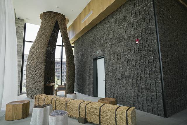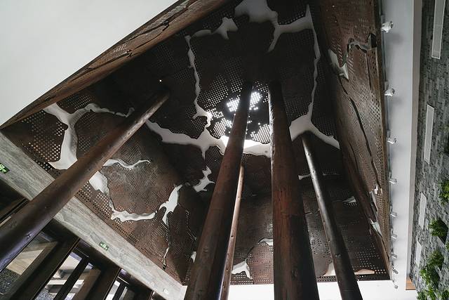在酒店,你会发现很多有意思的东西都跟“自然”有关,拿大兴安岭的废弃木头来装饰,用火山石、红杉木或废弃木材缔造的一个自然空间。有先进的灌溉系统、太阳能热水、高效节能电机、农耕一体,这些方式让酒店在自然环保下正常运行,将碳排放量减到最低。