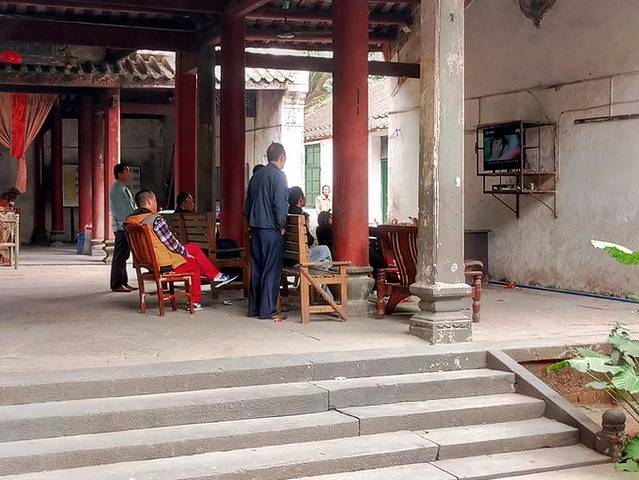 西天庙里还能看到一些大爷们坐在一起看电视,显得比较懒散。