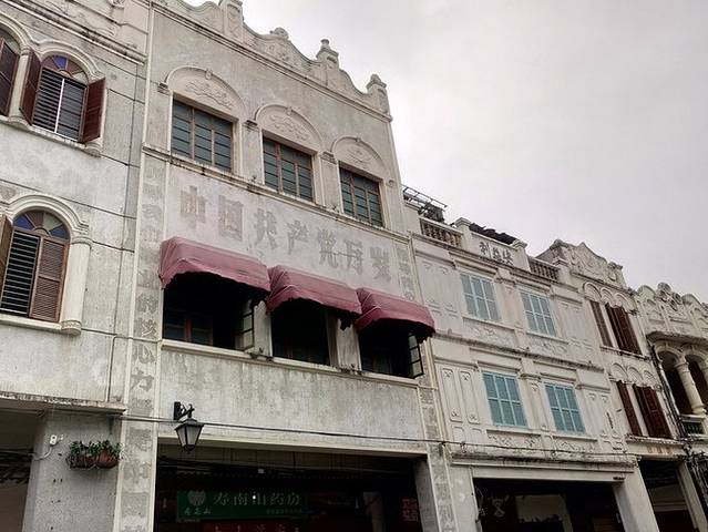 以前这里很多楼都是危楼,目前骑楼正在分阶段改造,翻新改造,据我观察此种翻新工程只是一个表面功夫,把对街道的一块进行完整的包装,而在这些街道的背部依然落败。大修过的骑楼,初看会比较经典,当你走完所有的点,又察觉不到一些闪光点,美丽而大气的房屋却少了一些灵性,或许是在整体翻修的时候用了颜色过于鲜艳的涂料,为什么不能按照古房子的模式改造。