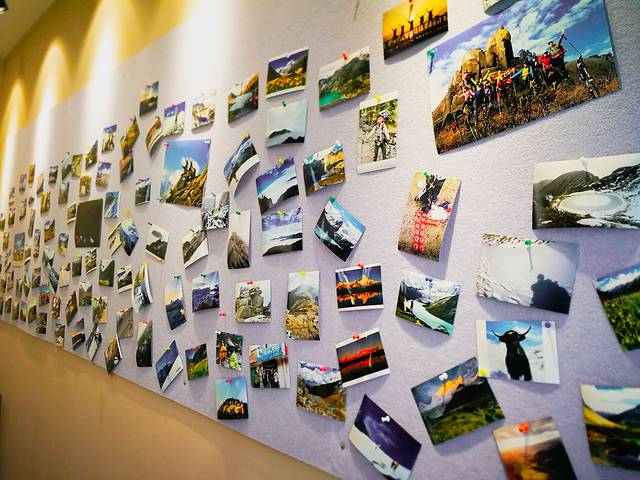 走过楼梯走廊,发现了意外宝藏,墙面上贴满了各式照片,仔细一看,才发现都是跟旅游徒步有关的。
