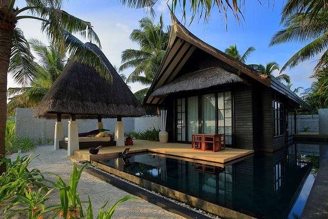 房型选择的是最基础的日出沙屋,蜜月的时候住了四晚水屋,感觉时间太短,这次定的是七晚。没有选择水屋,一个原因是小妞儿比较小,怕万一掉海里 ;再一个就是栈道太晒,进出没有沙屋方便;第三个原因如果浪大会比较吵。事实证明果然沙屋更适合宝宝,游泳,挖沙,出门拍照都很方便,去餐厅、儿童乐园、主泳池、潜水中心等岛上各处都很近。唯一的缺点是洗漱间有蚊子,一般早起有,白天和晚上倒没有。当然很遗憾没有体验JV岛著名的滑梯水屋。不过沙屋的L型泳池也是JV岛一大特色,选岛的主要原因也是对沙屋的房型和泳池很喜欢。