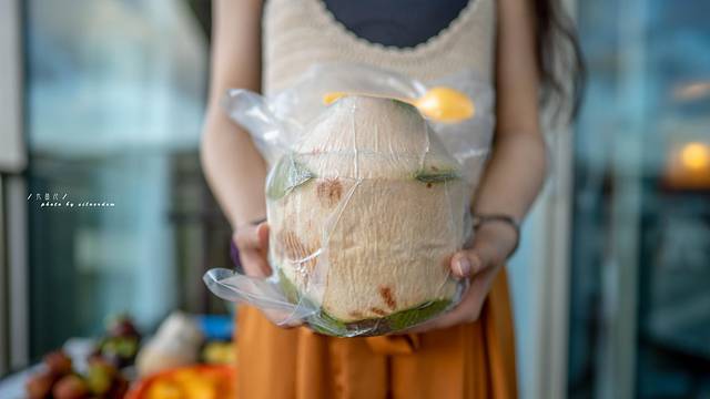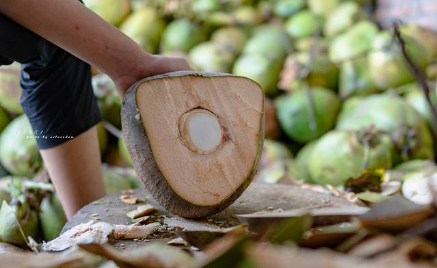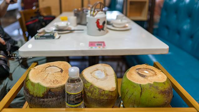 刚进餐厅,就看到右边的玻璃房中堆着一大堆的椰子,而工作人员便在这里砍着今日所需的椰子,都是现做现砍,食材很新鲜,个个都超大饱满。