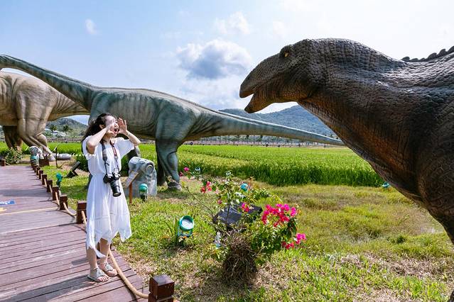 恐龙的造型非常逼真,有着上千种的恐龙物种,走着走合一直恐龙一直对着我吼叫,于是就开始了人与恐龙之间的“较量”,走在这满是恐龙的栈道上,仿佛置身于科幻世界。