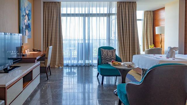 这家酒店应该算是在亚龙湾位置超好的一家,出门便是超蓝的海岸线,酒店设有自己的私人沙滩和躺椅,所以人超级少,因为人流很少的原因,所以这里的海岸线超级蓝。