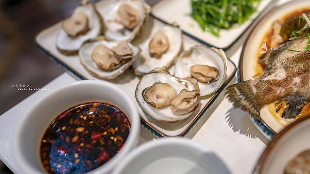 重头戏来了,最爱的生蚝,每次都必点,这里生蚝做法很特别,用最原始的做法,却做出了最美的味道,里面只有葱,姜,辣椒,和柠檬这四味调料,却胜过调料无数,这里的工作人员帮我们把生蚝一个一个撬开,然后取出生蚝放到盘子里,生蚝有两个调料,一个柠檬水去腥和泥质的,一个调料酱汁,先沾柠檬汁,在沾酱汁,这味道爱了。