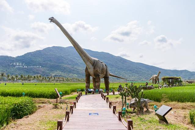 看完花海后直接做电瓶车到达下一个目的地——中国恐龙明星园区(大地之夜声光秀),满园的恐龙,这里一定是宝宝们的最爱,当你经过他的时候他不仅会宠着你发出吼叫声,还会扭动着他庞大的身躯,晚上经过的时候还有灯光秀,远远望去,像是回到恐龙时代,一群恐龙乍现在海棠湾,还时不时的出现吼叫声。