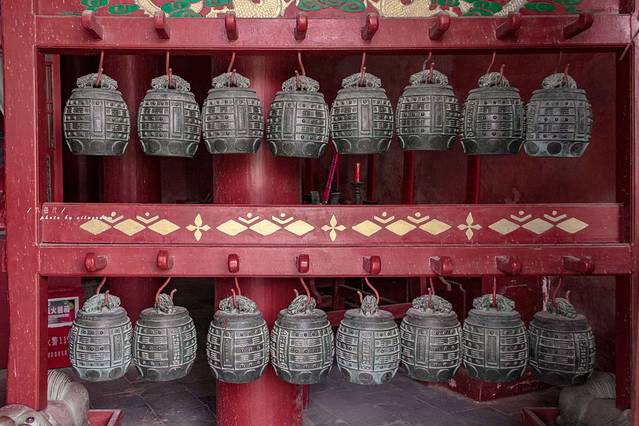 过了棂星门后便是冸池、泮桥、在古代学府有池塘是享有一种很高的待遇,在向前是大成门、天子台、大成殿,大成殿陈设有:孔子和“四配”(颜子、曾子、子思、孟子)塑像5尊及木雕神龛;十二哲人牌位;大小供桌、香炉烛台和各种祭器;主要乐器有一架16口编钟、一架24块纺馨、古琴、笛、箫、牌、大吊钟、楹鼓、十六戟架等