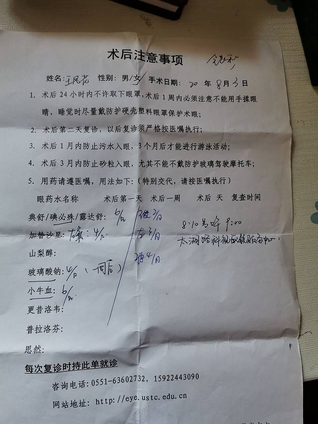 28号当天下午到的科大眼科,做了一系列的检查。拿了一瓶眼药水,要一天滴4回。
