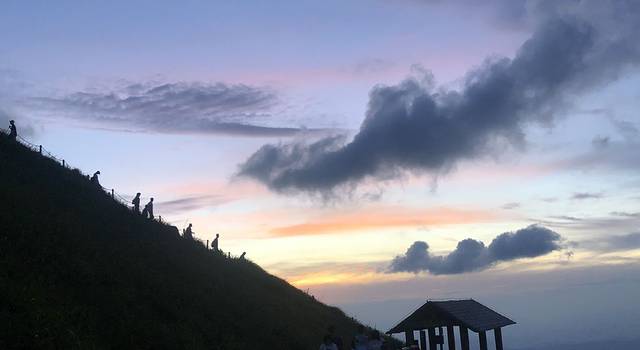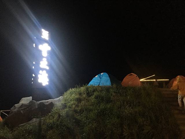 坐在亭子里我们两商量着还是要去争取一下,不能浪费珍贵的每一次旅行。分帐篷的老大哥也特别给力,给我们在外面的露营帐篷角落里找到了一块地方,而且正对着云海。运气可真好,同时也证明,凡事要尽力去争取,这是以前的我不会的,可能会暗自神伤,生闷气的凑合一晚。