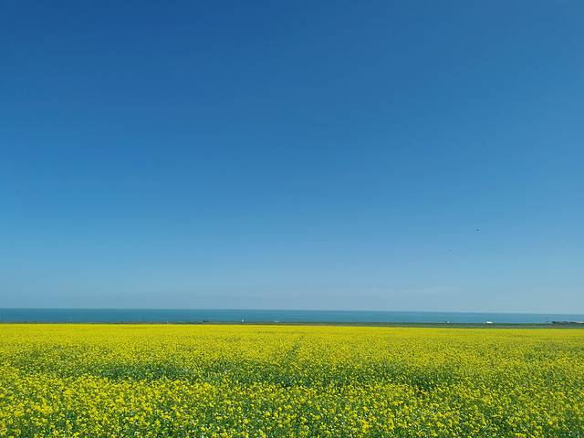 提示👉👉岸边很多白牦牛可以骑上去拍照,20元/人,白牦牛很可爱😊,被驯化得很听话,路过油菜花田🌸🌸,继续拍照(但是要收费哦,记得讲价🤪🤪)。
