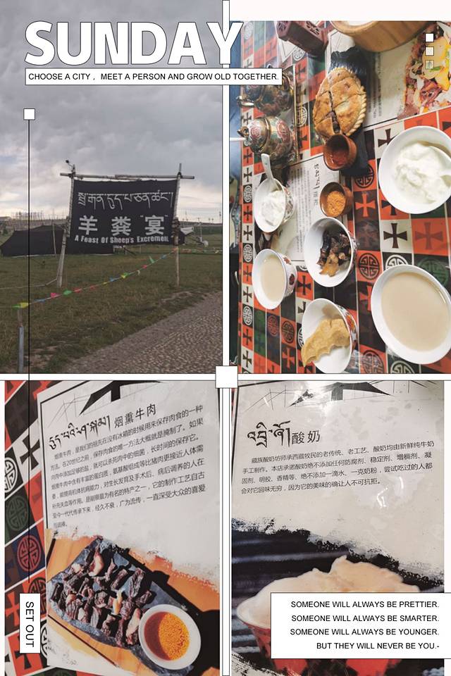 在牦牛帐篷里尝试了羊粪“宴”,帐篷冬暖夏凉,帐篷里烧的羊粪牦牛粪,尝试了当地的藏式小吃:💕牦牛酸奶(纯天然无添加,连一滴水都没有添加,就是有点酸)💕牦牛奶茶(有淡淡的咸味)💕烟熏牛肉干(很香),糌粑(口感有点粗糙,甜的)。