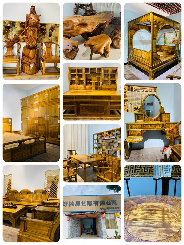 行程描述(第六站):8月12日(周三),本来当天的行程是要去浏阳大围山漂流的,可遇到下大雨涨水,漂流的地方关闭了,于是辗转到了永和镇(湖南浏阳),永和有着全球第一的“菊花石”之乡的美誉,走在永和镇路上,看到“好楠屋艺雕”的牌子,以为是艺术雕刻展览馆,走进才知道是一家金丝楠木家具展厅,和馆主商议之后,可带我们参观,并且给予我们细细的讲解(的确金丝楠木在市面上很少见,所以比较感兴趣),参观过程中,眼球一下子被精美的新中式家具吸引了,特别是家具的木材纹路和色泽和普通的木材真的很不一样,在光线的照射下闪闪发光,很有立体感(经馆主介绍得知是水波纹路,的确像是阳光照射下湖面上的波光粼粼),大概参观了1个多小时,孩子们见证了金丝楠艺术品从原木到成品的过程,每一件成品都可以称得上是一件艺术品,全是榫卯结构(没有用到半颗现代的钉子),真是感叹古人的智慧与文化的传承;游览完后,馆主还很热心的给介绍了当地的特色蒸菜馆(好吃不贵),此半日行程真是开阔了视野、又享了口福!在发表此片游记时,还特地经馆主同意后才添加进当日行程来(金丝楠太贵重,担心馆主不同意写入)。