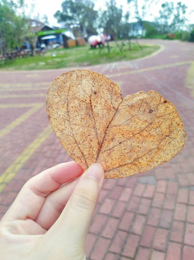 我们从右边的一条木栈道走出去,可以看到整个海景,还有一片草坪,草坪旁是一片小树林;火山岛又称爱之岛,就连我偶然间捡到的一片落叶,都是心的形状~