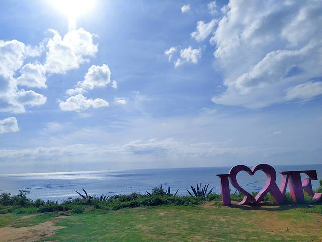 从彩虹山走出来,就是一些网红拍照处,有蓝天有大海,加上这些精心设计的道具,确实适合拍照。