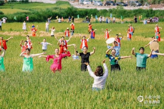 随后,在专业舞蹈演员的带领下,我们奔向稻田中,手拉着手,跳起了欢快地舞蹈,虽然大家相互并不认识,但在这样的场景和氛围下,每个人都尽情享受着丰收的喜悦,感觉真是棒极了。