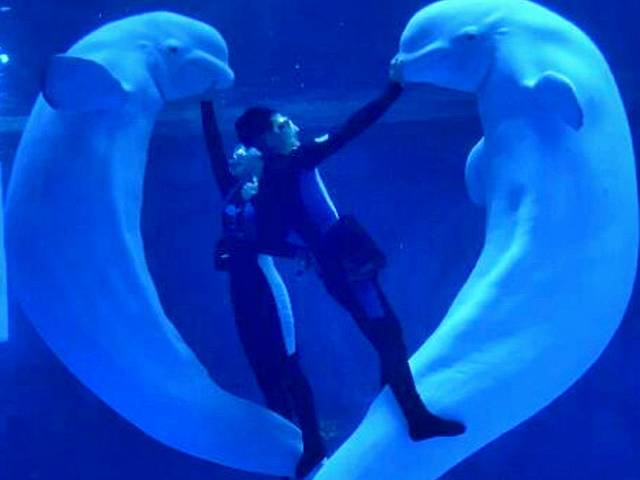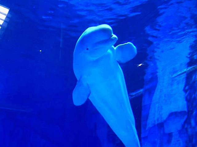 2.白鲸之恋:被称为“海洋中的微笑天使的白鲸,跟工作人员配合表演,摆出各种可爱的造型,真的太可爱了。[飞吻R]
