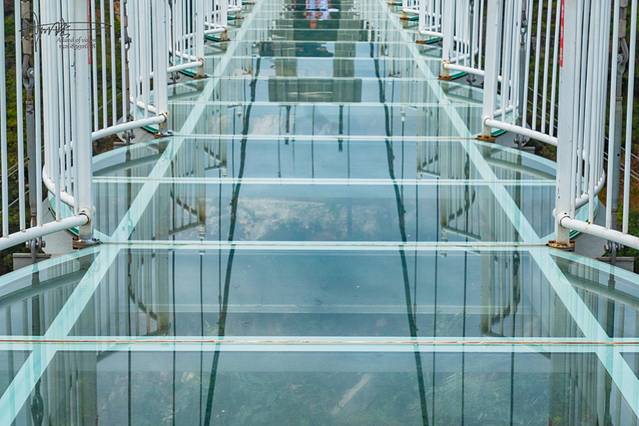 蒙山5D玻璃桥全长160米,宽度3.04米,桥面为玻璃铺设胶合而成。5D的地面动感效果处理,在行走其中体验到玻璃桥的惊险、刺激,是现代工程与大自然奇景的完美结合。与她手牵手站在全透明的玻璃桥上,欣赏着360°的山峦美景,是何等的浪漫与刺激。
