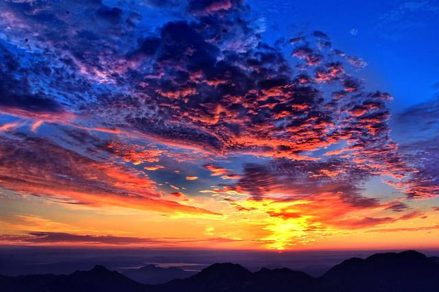 蒙山日出极负盛名,这得益于蒙山独特的地形形貌。山高1156米为沂蒙山的最高点,每逢日出时分朝阳沿地平线缓缓升起,翻涌在蒙山上空的云海伴着被日出的光辉所渲染的朝霞,亲身感受一场浪漫的日出。