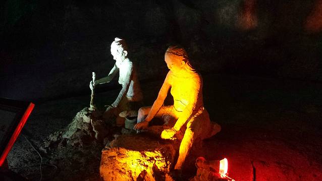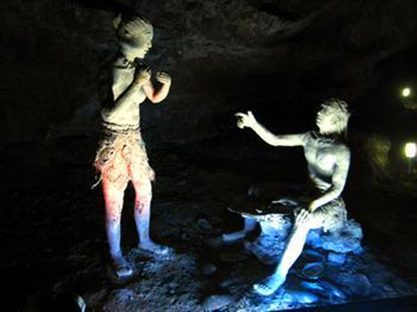 考古学家在这里挖掘出我们先民以前所使用的工具和骨器,推断出他们是怎样生活的,把它模拟出来,你们看我们这里就塑了六组泥像,他们经历了,采集时代、渔猎时代、农业时代,而农业时代无疑是这三大时代中最伟大的时代。