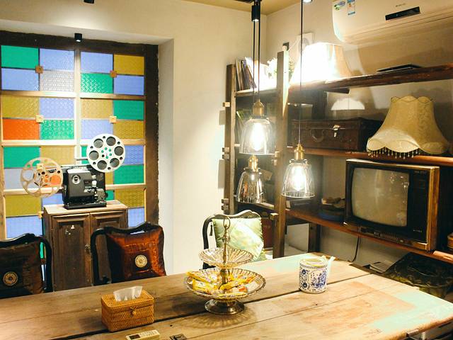 走进民宿内,可以感受到浓浓的复古气息。旧电视机、收音机、电影放映机、手电筒、暖瓶、木箱子……犹如小型博物馆,这些浸透着岁月痕迹的老物件,让人内心一瞬间变得柔软。
