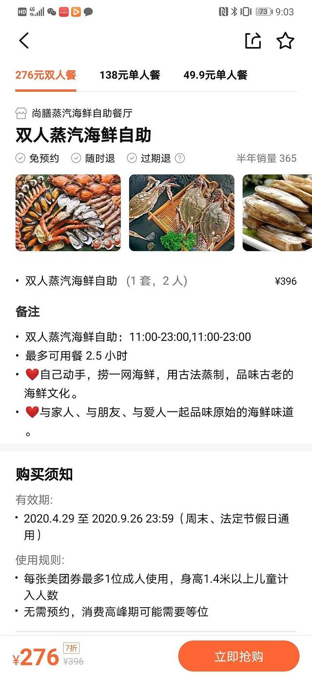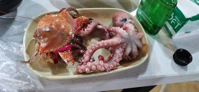 媳妇儿收拾的时间我还是老习惯,大众点评找美食,发现一家秦皇岛自助餐评价榜排名第一的店就在我们住的酒店对面,尚善蒸汽海鲜自助餐厅,138元/每位,果断前往,餐厅一楼面积比二楼小挺多,我们在一楼选了海鲜直接上二楼,服务员小哥帮着吧海鲜蒸上,所有海鲜都在门口鱼缸里养着,都是鲜活的,自己随意捞,不限量,梭子蟹个头不大,但是很活跃,皮皮虾,海虾,活八爪鱼,海螺,各种贝类,偏口鱼,我们两口子大快朵颐,吃完第一锅又第二锅蒸了两条偏口鱼,一人一条,第三锅蒸了螃蟹和生蚝,喝了一瓶啤酒和一个小二,酒足饭饱后出门决定随便溜溜,消消食儿