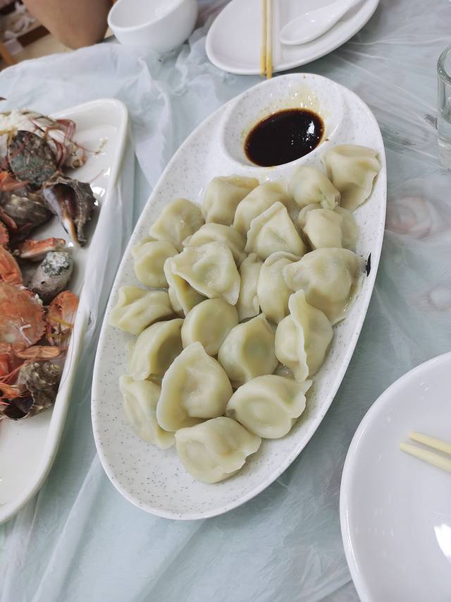 鸽子窝公园出来,感觉饿了,媳妇儿想吃海鲜饺子🥟了,想起昨天看到住处对面边上就有,感觉打车前往,从鸽子窝打车回宾馆才九块钱,好便宜,因为没有想看街景,不然骑车也用不了多久。