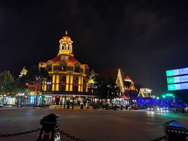 出饭店往南一看,各个建筑物在灯光的照射下异常美丽,吸引着我们走了过去,街边两侧的商店灯火通明,游人不是太多,大多都是海鲜饭店和纪念品商店,卖泳衣和遮阳帽的居多,再就是一些卖珍珠贝壳的小店。