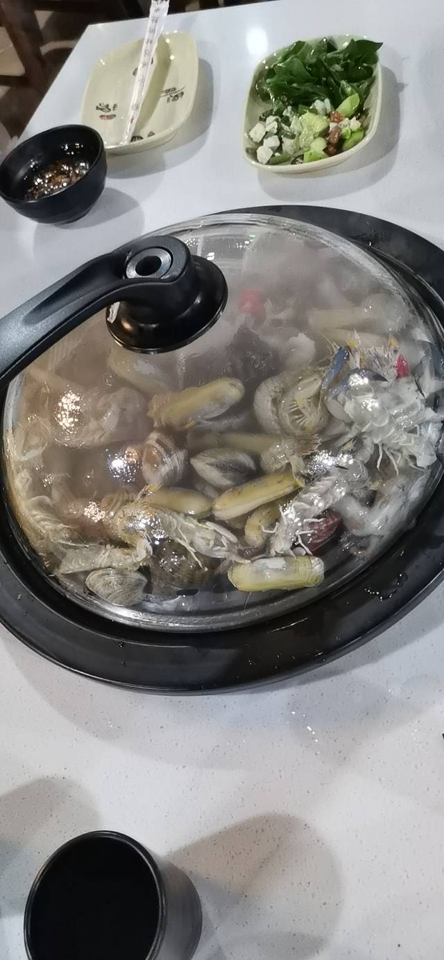 回宾馆稍作休整,来到路东的一家小店,水饺自助,38元一位,简单的凉菜,饮料,啤酒,白酒都是免费的,每桌一个电磁炉,客人到了上锅,倒上纯净水,旁边的冰柜里有先包的各种馅的饺子,每个小木簸萁来摆着八只饺子🥟,按需自取,肉的,素的,鲅鱼的,皮皮虾的,我们两口子好像煮了六盘,每种都好吃,就不一一介绍了,这是在外面,在家可吃不了这么多😄