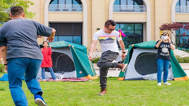 登星光岛准备去皇冠假日酒店后花园的帐篷里玩