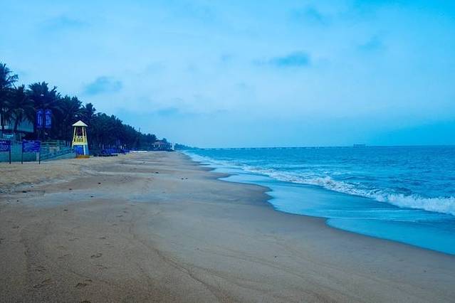 绵长的海滩边是一望无际的琼州海峡,很多海上运动的人再次游玩。12月的海水有点凉了,很少有人游泳,想看美女的愿望落空了。