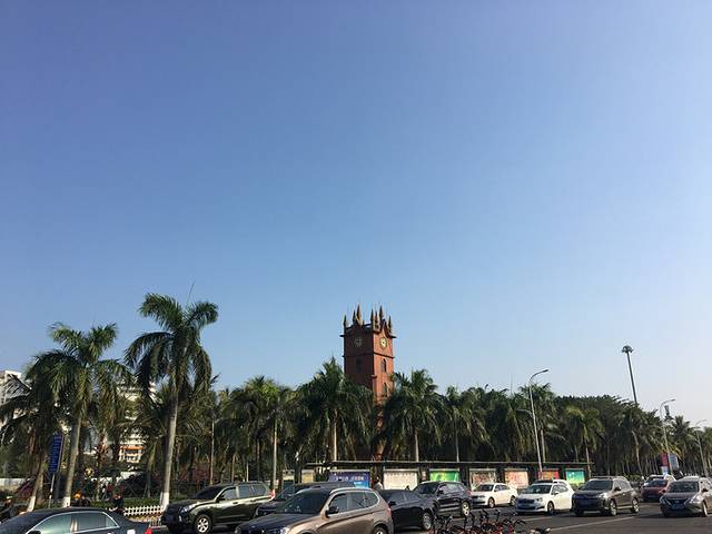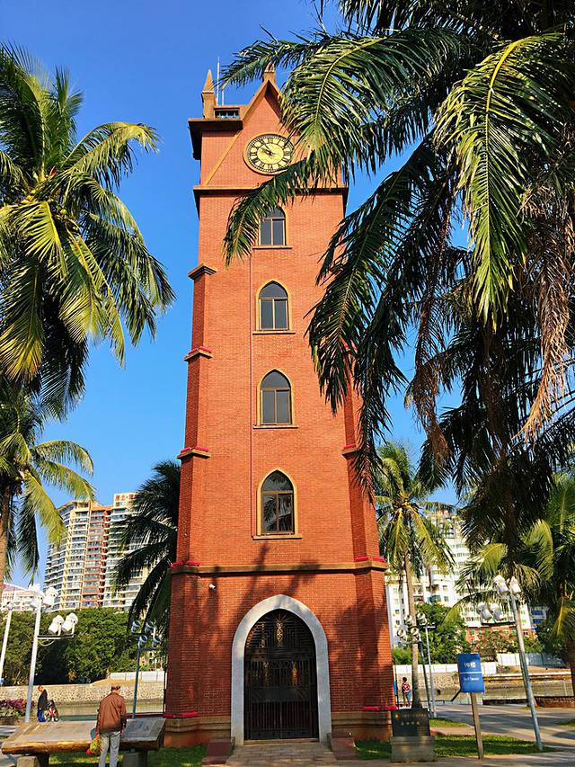 钟楼面向入 海口 ,之前是为了统一时间而建,现在成了景点,整点还会报时。
