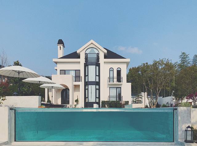 这座城堡在远离城市喧嚣的村落中,背靠竹林🎋🎋四周植被环绕,远远望去是连绵起伏的山林。