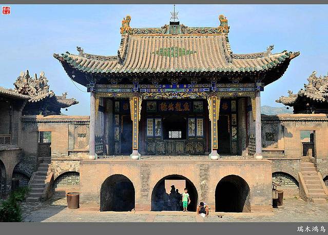 位于碛口古镇卧虎山腰的黑龙庙,因供奉黑龙而得名。庙始建于明代,雍正年间增建乐楼。道光年间重修正殿和东西耳殿。黑龙庙气势恢宏,规模壮阔,昭然入目,总面积约4800 平方米,是碛口古镇的标志性建筑,也是碛口景区的主要景点之一。登黑龙庙,可远眺黄河气势,近观湫水曲折,聆听二碛涛声,一览古镇全貌。黑龙庙山门上刻有邑人崔炳文撰写的对联:“物阜民熙小都会,河声岳色大文章”,文笔精到,气势磅礴,准确地描绘出当初碛口的繁荣景象。另有清书法家、永宁知州王继贤的“山河砺带人文聚,风雨祥甘物气和”等多处笔迹。庙内乐楼是山西省保存最完好,设施最完善的一处古戏楼。舞台为三面观,两侧有包厢。台上唱戏无须任何扩音设备,全场都能听得清楚。夜深人静时,连对面山上和黄河对岸的村庄都能听到。其声学原理已引起许多专家的关注,目前尚无定论。黑龙庙,是碛口古镇祈雨的庙宇。它气势不凡地踞于黄河边的高处,俯瞰黄河,居高临下,发出一种威严来,所有到过古镇的游客几乎都要慕名登上神庙拜访,一览古镇全貌。历史上,当地人的祈雨都在这里进行。原来,尽管面对黄河水碛口却依然未能摆脱干旱,于是,黑龙庙便常常处于香火鼎盛的状态延续至今。