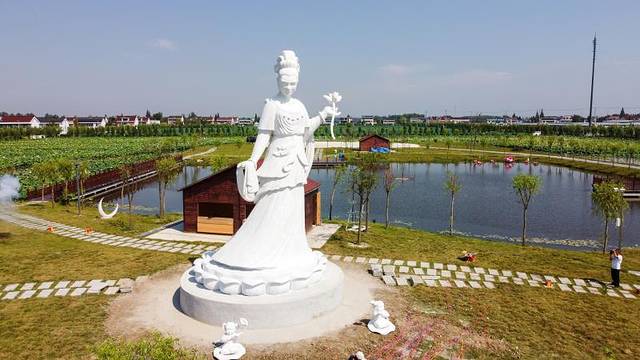 9月6日上午,如皋市城北街道平园池村荷香民俗园景区“荷花仙子”雕塑像顺利落座,同时今年在景区发现的双株并蒂莲标本也采摘制作陈列到了平园池村的农耕博物馆。如皋旅游