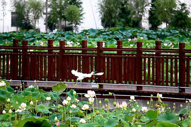 每年盛夏,如皋市平园池村荷香民俗园景区千亩荷花都会竞相开放。据说平园池村种植荷花历史由来已久与当地民间一直流传着一个传说有关,传说八仙云游路过此地,何仙姑不小心掉下一粒莲子,正好落到池塘里头,顷刻就形成了一片荷塘,开出的荷花分外红艳清香。南通旅游 2017年开始,如皋市平园池村形成了集种植、采摘、休闲、旅游观光为一体的荷香民俗园景区。这次定制的身高8米的“荷花仙子”雕塑像,该雕塑像落座于现在的荷香民俗园景区二期荷花池内,雕塑像手持荷花、宽衣薄袖,满池的荷花风景如画,更衬得“荷花仙子”生动自然、惟妙惟肖,预示着祥和吉利。而今年发现的两株并蒂莲就生长在“荷花仙子”雕塑像边。并蒂莲是荷花中的珍品,其生成的几率仅十万分之一,目前并蒂莲的遗传机制还不能复制,只能天然生成。并蒂莲在同一个荷花池陆续盛开,这种情况在全国也是鲜有记载。