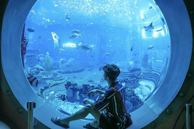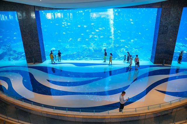 不过如果水族馆旁边有工作人员会问你是不是酒店的住客,只有住客才可以在水族馆前面拍照。水族馆前面是喝下午茶的座椅,背面就是一整面的水族展示墙,拍照还是不错的。失落的空间水族馆门票售价198元,没有学生票。里面面积不大,如果你看过其他景点的水族馆的话不是很建议去失落的空间。