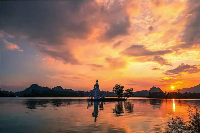 广东肇庆星湖国家湿地公园(仙女湖)内的观佛岛上,每天都聚集了大量的摄影发烧友以及游客,长枪短炮严阵以待,他们很多人从中午就开始“霸机位”,只为等待那傍晚时分出现的“卧佛含丹”。此等奇观,从九月中旬到下旬,一直持续十多天,有网友感叹说,如此盛况好比杭州的钱塘江观潮般,都只为那一刻的震撼。