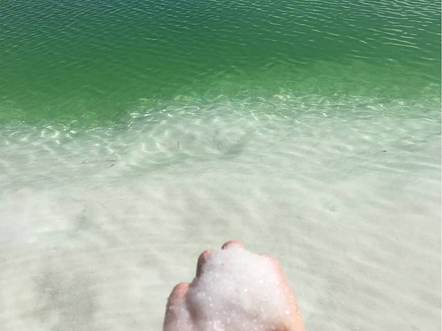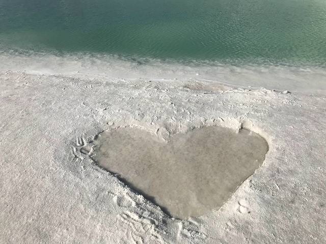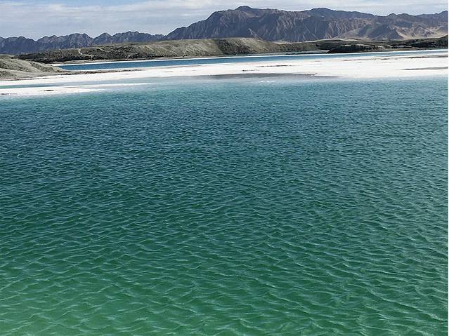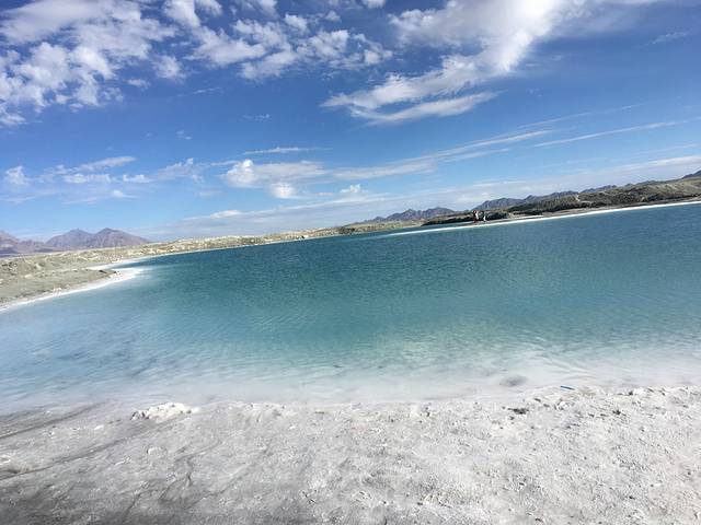 翡翠湖远观是蓝色的湖面,近看是绿色的,水下是白色的盐,三个颜色交错,是难得一见的视觉盛宴。推荐指数五颗星!