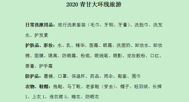 4、西北高海拔地区紫外线非常强,而且非常干燥,一定要做好防晒,要带好墨镜、防晒衣,帽子,一定要带够补水的面膜,及时补水;