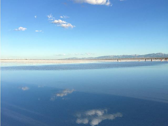盐湖上的云朵倒影