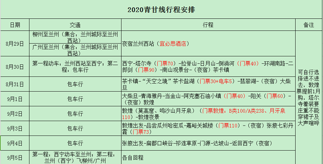 西北地域辽阔,且地广人稀,适合自驾和包/拼车,自驾由于不熟悉路线可能会走很多冤枉路,建议包/拼车,我们三小只最终决定包车,让司机带我们看尽万般风景和感受大西北的独特魅力。温馨提示一定要在正规渠道包车,可以通过朋友推荐或者在正规网络平台上订购,不要在路边,车站接受一些拉客司机的邀请,这样很容易被坑。西北旅游行程有很多,推荐6-7日游,我们选择的是6日游,如下:(莫高窟门票需提前1个月网上预订)