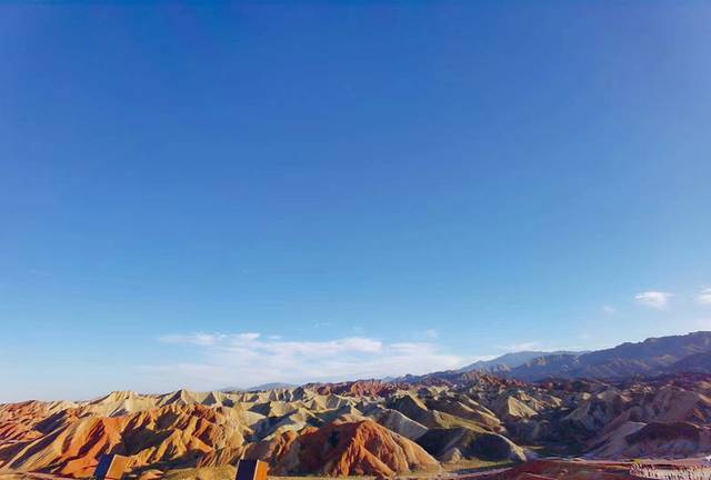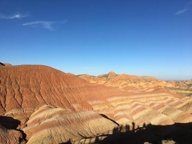 七彩丹霞地貌群位于甘肃省张掖市临泽县倪家营乡南台村,平均海拔1850米。有红色、黄色、白色、绿蓝色,色调有顺山势起伏的波浪状,也有从山顶斜插山根的,犹如斜铺的彩布,在阳光的照射下,像披上了一层红色的轻纱,熠熠泛光,色彩异常艳丽,让人惊叹不已,丹霞建议到第二站和第四站的观景台,这2个地方是最美的。