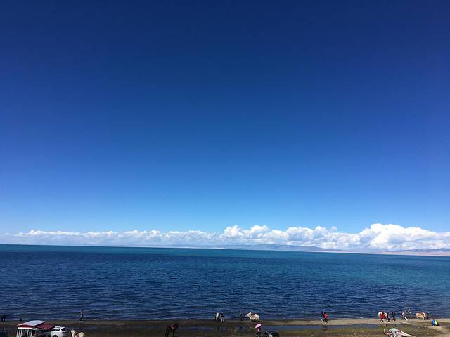 吃过午饭一路驰骋,来到了青海湖。从未想过有如此蓝的湖水,水天一色,湖面与地面形成一个曲面弧度,似人的眼睛,明亮而深邃。 青海湖,古代称为“西海”,由于青海湖一带早先属于卑禾羌族的牧地,所以又叫做“卑禾羌海”,藏语称青海湖为“措温博”,蒙古语称之为“库库诺尔”,这两种不同的语言表达了同一个意思,即青蓝色的海洋。