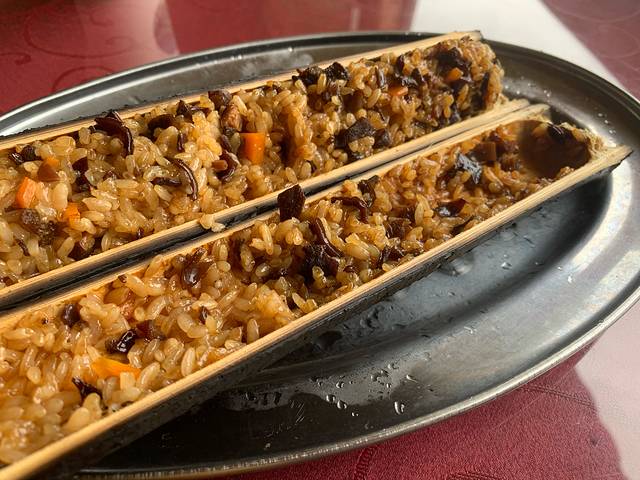 竹筒饭,把米饭🍚放在竹筒里烧好的,个人觉得…没有吃出什么不同…