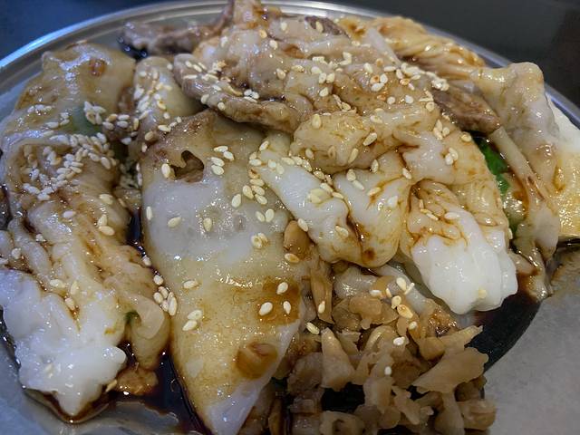 到了店面发现这家肠粉果然很火,很多附近的居民来买,大部分都是打包带走,店里人很多,都没有座位,取餐窗口一直排长队,庆幸点了两份,不然因为某臭的“真香”还要再排一次队,拌一拌番茄酱和豆瓣酱,味道真的不错,好吃不贵~