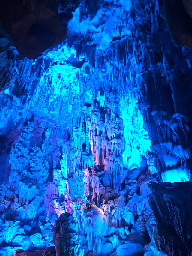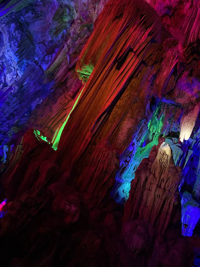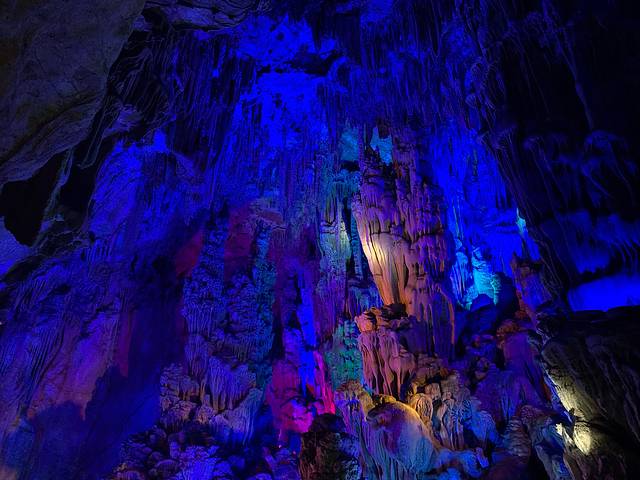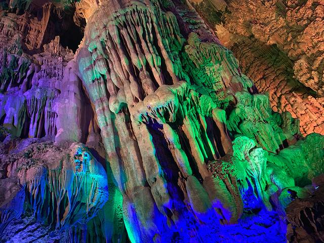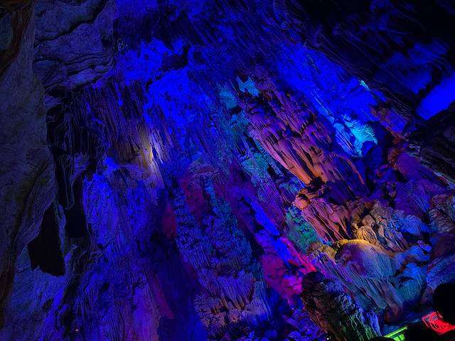岩内被打上不同颜色的灯光,和大自然的鬼斧神工融合在一起,真的很好看,里面的很多岩石经过讲解员的提醒,看起来确实很像那么回事,比如大狮子🦁️,大白菜🥬,确实有些像,只能感叹大自然的神奇