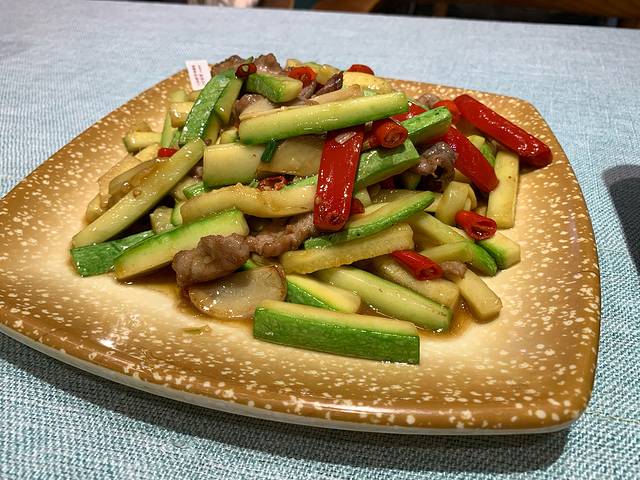 小南瓜炒山猪肉,看到小南瓜我还以为是西葫芦,问了才知道,这就是南瓜,只不过是“小南瓜”还没有长大的南瓜🎃