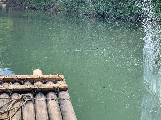 中间还经过了好几个小陡坡,竹筏从上到下拍在水中,激起高高的水花,真的…很爽,哈哈哈(*^o^*)