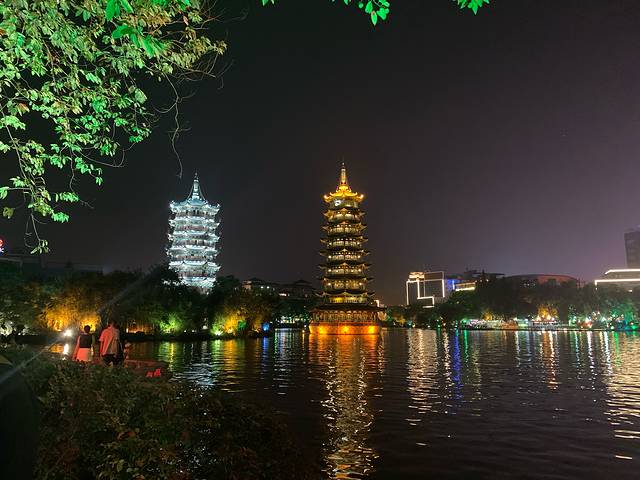 两江四湖是可以坐船的,船票二百多,是那种大型的游船,我们没有坐船,就沿着江边溜达,景色也是可以的,旁边有个步行街,大概就是桂林的市中心了